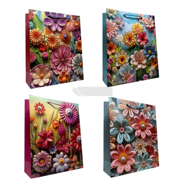 Torebka prezentowa uniwersalna M Kwiaty metal mix
