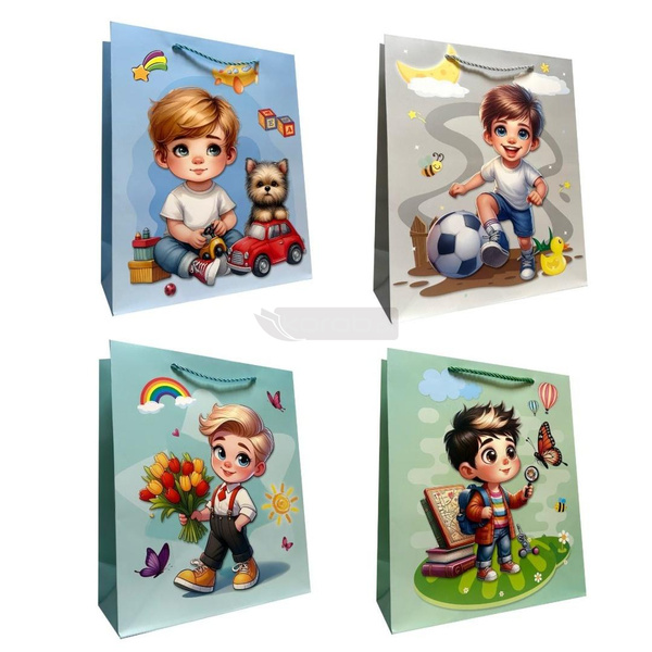Torebka papierowa dziecięca, dla chłopca wykonana z grubszego papieru o gramaturze 210 g, co zapewnia jej większą trwałość i odporność na obciążenie. Wyposażona w grubszy, kolorowy sznurek, który zapewnia wygodny uchwyt i estetyczne wykończenie. To praktyczne opakowanie, które podkreśla wartość wręczanego prezentu.