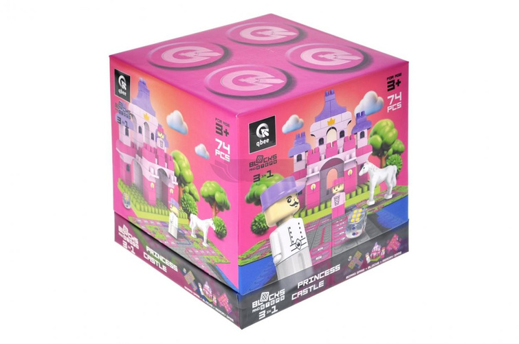 Konstruktor Block&Steps: Zamek Księżniczki + gra planszowa i gra memory 3 w 1, 74 elementy QB300-004 qbee