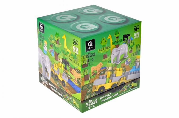 Konstruktor Block&Steps: Przygoda na Safari + gra planszowa i gra memory 3 w 1, 89 elementów QB300-006 qbee
