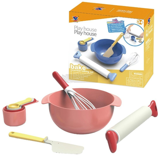 Zestaw do pieczenia ciast i ciasteczek Miska, miarki, trzepaczka, wałek, nóż do ciasta Wymiary opakowania: 27 x 10 x 24.5 cm Wiek 3+