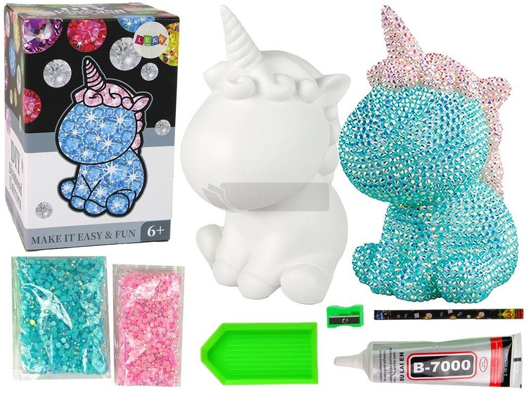 W zestawie znajdziemy specjalną podkładkę na której umieszczane są kryształki, dwa kolory udekorują małego jednorożca w dowolny sposób. Specjalny klej stworzy powierzchnię figurki klejącą, dzięki czemu diamenciki będą się trzymać. Układaj jeden po drugim, a oczom ukaże się piękna figurka! Ozdobi Twój pokój !