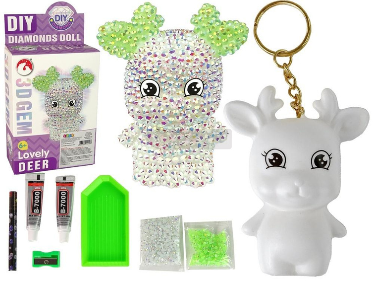 Diamentowy Renifer DIY kryształki brelok 3D biały