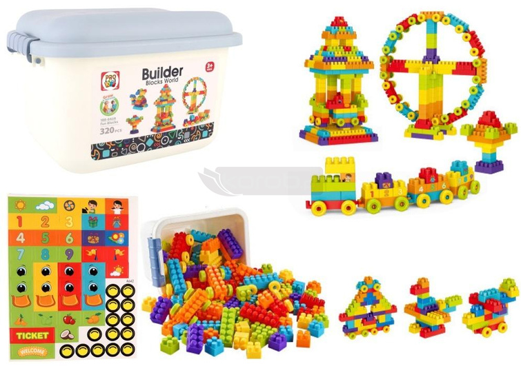Zestaw klocków budowlanych Builder Blocks World to prawdziwa gratka dla małych konstruktorów i odkrywców! Aż 320 kolorowych elementów umieszczonych w solidnej skrzyni z pokrywą daje dzieciom ogromne możliwości tworzenia i eksperymentowania. Dzięki różnorodnym kształtom i barwom dziecko może budować wszystko, co podpowie mu wyobraźniaod pociągów i samochodów, przez karuzele i diabelskie młyny, aż po imponujące wieże czy własne fantazyjne budowle.