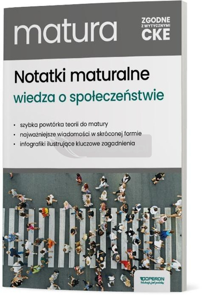 Chcesz szybko powtórzyć teorię z wiedzy o społeczeństwie - przypomnieć sobie definicje, procesy, akty prawne, organizacje? W"Notatkach"znajdziesz skrót najważniejszych wiadomości. Ta niewielka objętościowo publikacja jest szczególnie przydatna, gdy masz mało czasu na naukę i powtórki lub nie chcesz przerzucać wielostronicowych książek w poszukiwaniu potrzebnych informacji. Dzięki książce"Notatki": przypomnisz sobie esencję wiadomości z WOS-u niezbędnych na egzaminie maturalnym, a także na kartkówkach i sprawdzianach;. zobrazujesz sobie najważniejsze zagadnienia dzięki infografikom umieszczonym po każdym dziale tematycznym;. zyskasz wartościowe narzędzie do powtórek; skutecznieprzygotujesz się do zdania egzaminuz wiedzy o społeczeństwie. Co znajdziesz w publikacji "Notatki"?. Wszystkie treści są zgodne z aktualnymi wytycznymi Centralnej Komisji Egzaminacyjnej. Możesz miećpewność, że powtarzasz dokładnie to, co naprawdę potrzebne. Publikacja "Notatki" zawiera: najważniejsze wiadomości z każdego działu, podane w skrótowej formie; infografiki ilustrujące kluczowe zagadnienia. To nie wszystko. Szukasz jednej książki do matury, w której znajdziesz niezbędną teorię, zadania egzaminacyjne, wzorcowo rozwiązany arkusz, odpowiedzi do zadań, wskazówki i porady? Wybierz"Zadania z odpowiedziami". Gdy chcesz sobie przypomnieć szczegóły z podręczników, sięgnij po"Teorię do matury". Być może chcesz sprawdzić się przed maturą? Jeśli tak, to wybierz"Arkusze maturalne z rozwiązaniami krok po kroku". Możesz także skorzystać zPlatformy Operon dla ucznia, czyli naszego cyfrowego wsparcia przed maturą. Znajdziesz tu pełne odpowiedzi do wszystkich zadań wraz z etapami dochodzenia do rozwiązania.