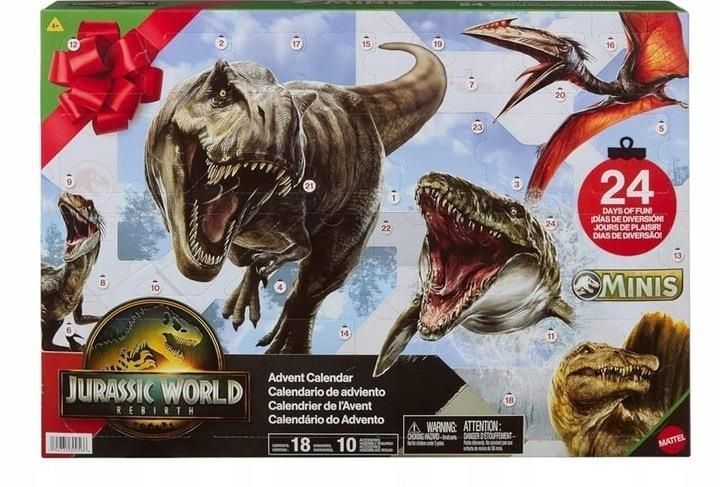 JURASSIC WORLD ODRODZENIE KALENDARZ ADWENTOWY 2025, figurki dinozaurów JGB67