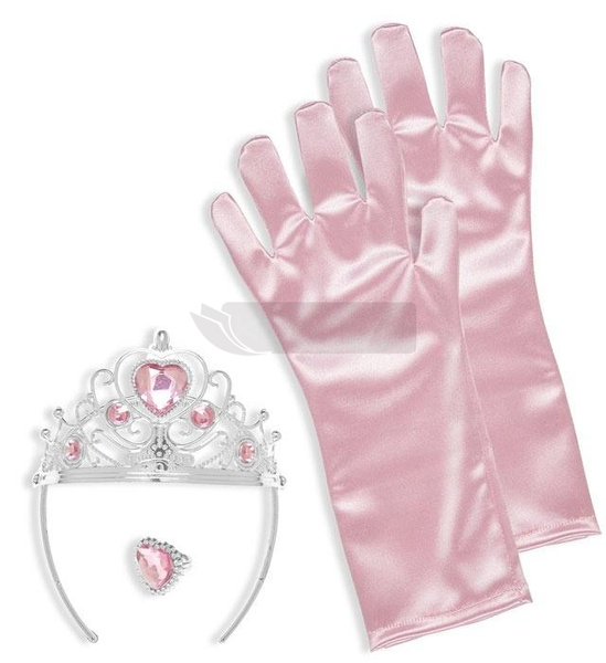 Przenieś się do świata baśni i zostań prawdziwą księżniczką dzięki temu wyjątkowemu zestawowi dodatków w kolorach srebra i różu! W skład kompletu wchodzą: Różowe rękawiczki - delikatne i eleganckie, dodające szyku każdej księżniczkowej stylizacji. Srebrny diadem z różowymi kamieniami - lśniący i pełen blasku, idealny, by poczuć się jak na królewskim dworze. Pierścionek z serduszkiem - uroczy detal, który podkreśli Twoją wyjątkowość i magię księżniczkowego świata. Ten zestaw to doskonały wybór na bale, zabawy kostiumowe czy codzienne chwile pełne marzeń i magii. Stań się bohaterką swojej własnej bajki!