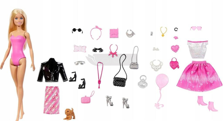 LALKA BARBIE ADWENTOWY KALENDARZ MODOWY 24 niespodzianki + lalka JFL63