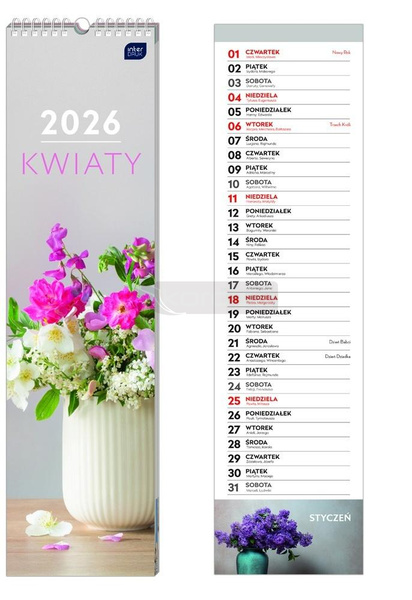 Kalendarz 2026 paskowy 13,5x50cm Kwiaty