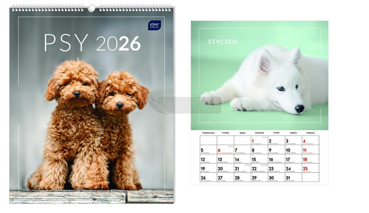 Kalendarz 2026 ścienny planszowy 33,5x40cm Psy