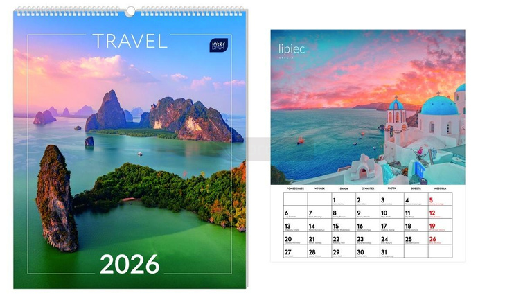 Kalendarz 2026 ścienny planszowy 33,5x40cm Travel