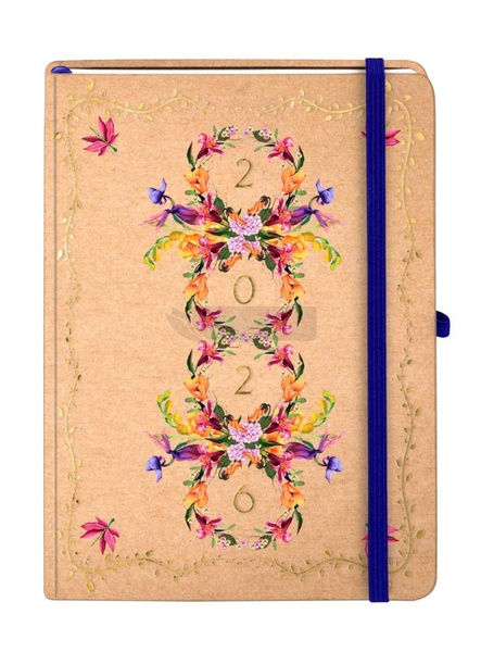 Kolekcja: Kraft, format: A5, wymiary okładki: 144x211 mm, układ: tydzień na stronie, ilość stron: 144,oprawa: twarda, materiał: papier, gramatura papieru: 80g, kolor papieru: chamoise ,dodatki: plan roku 2026, ważne wydarzenia, skorowidz adresowy, notatki, pionowa gumka zamykająca, wstążka, gumka na długopis: tak, zaokrąglone rogi: tak, wyklejka: chamoise, koperta: tak