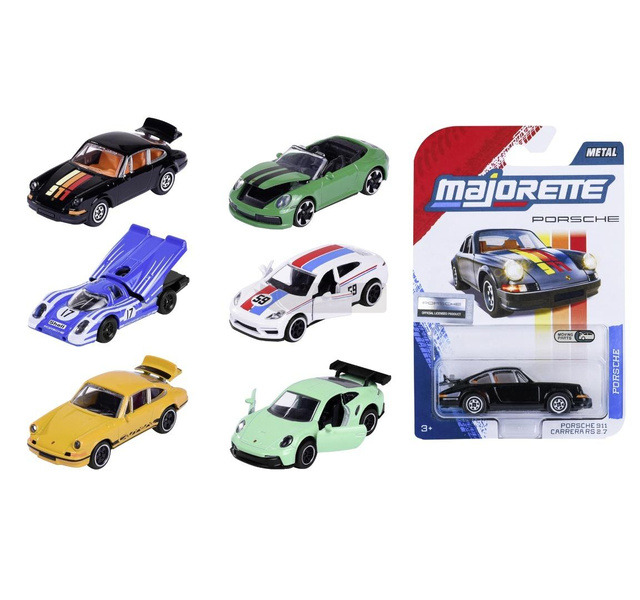 Metalowe samochody na licencji marki Porsche. Pojazd posiada ruchomy element, taki jak bagażnik/drzwi/maskę. W zestawie znajduje się karta kolekcjonerska z nazwą modelu oraz parametrami technicznymi danego pojazdu. Długość pojazdu 7,5 cm, 3l+