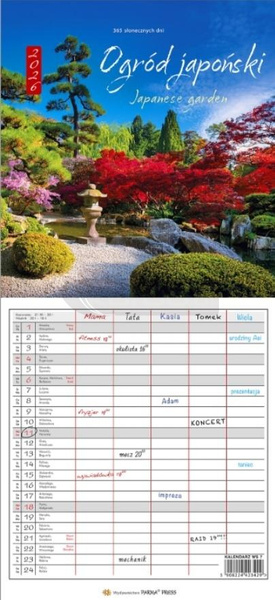 Kalendarz 2026 wieloplanszowy wąski - Ogród japoń.
