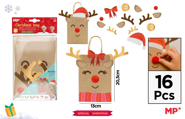 Zestaw 2 torebek "kraft" o gramaturze 120gr/m2z jednostronnym nadrukiem w pełnym kolorze. Wzór renifer chłopiec i dziewczynka.