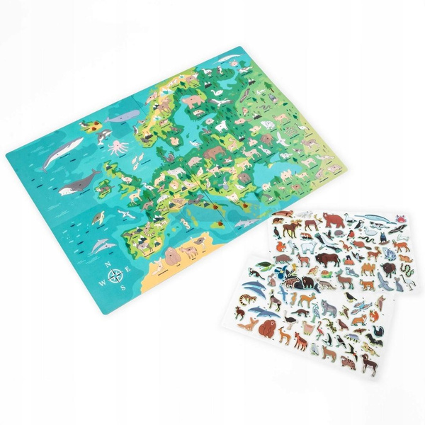 Wyrusz w ekscytującą podróż dookoła świata i odkryj fascynujące zwierzęta każdego regionu! Poznaj pingwiny w lodowej scenerii Antarktyki, lwy na afrykańskich sawannach oraz kangury skaczące po australijskich równinach. Zestaw zawiera naklejki ze zwierzętami, które można umieszczać na mapie zgodnie z oznaczeniami, aby zobrazować ich naturalne środowiska. Ta niezwykła zabawa rozwija jednocześnie wiedzę geograficzną i biologiczną. Dodatkowo, na odwrocie mapy czeka niespodzianka wciągająca gra planszowa, która dostarczy wielu godzin rodzinnej rozrywki. To idealne połączenie nauki i zabawy: rozwija wyobraźnię, poszerza horyzonty i uczy o różnorodności świata przyrody.
