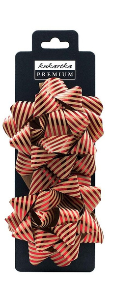 Kokardy wykonane z papieru kraft uszlachetnione dodatkowo metalizowanymi foliami.