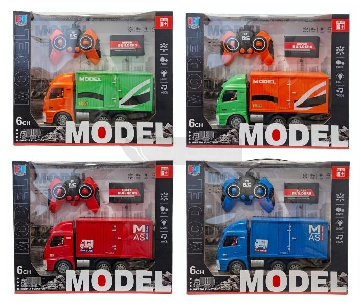Zdalnie sterowany samochód ciężarowy. Porusza się do przodu, do tyłu, skręca w prawo i w lewo. Auto posiada ruchome elementy, a także świeci kolorowym światełkiem i wydaje dźwięki. Zabawka działa na baterie AA (niezałączone) oraz Ni-Cd (załączone). Produkt występuje w kilku wersjach kolorystycznych, wybierany losowo. Cena dotyczy jednej sztuki. Zabawka przeznaczona dla dzieci od lat 6. Zapakowana w kartonowe pudełko.