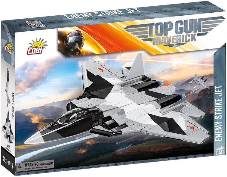 Filmowy kamuflaż - Malowanie to dokładna kopia tego, które widzowie oglądali w Top Gun: Maverick. Kamuflaż w odcieniach szarości nawiązuje do prototypowych rosyjskich myśliwców, ale w filmie symbolizował siły tajemniczego przeciwnika z Bliskiego Wschodu. 851 elementów i skala 1:48 - Zestaw składa się z doskonale spasowanych elementów i jest zaprojektowany w klasycznej modelarskiej skali, która Idealnie komponuje się z innymi zestawami lotniczymi COBI.