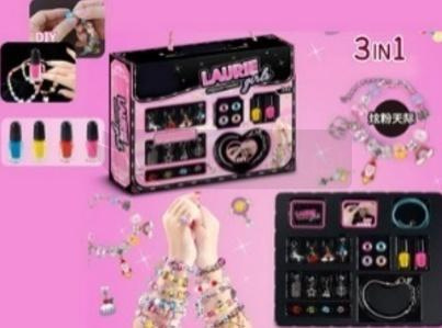 Zestaw piękności 3w1: bransoletki + charmsy + lakiery do paznokci w walizeczce rozm opak 23,5x5x18,5cm