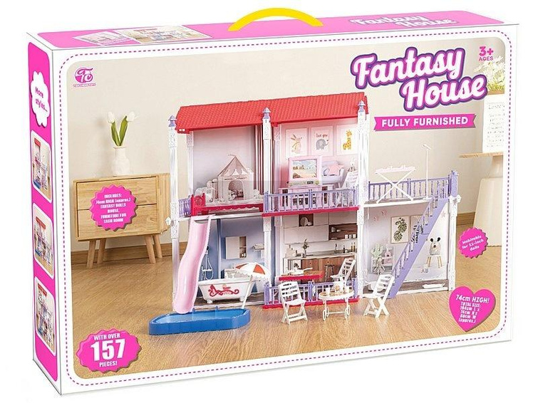 domek dla lalek, plastikowy, wy.po rozłożeniu 104x74x60cm, z meblami; 72x52x12cm