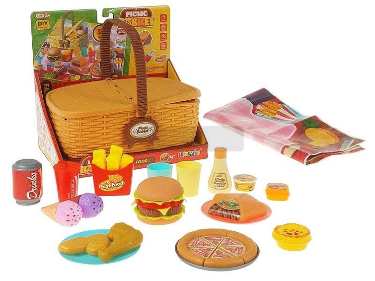 zestaw piknikowy w koszyku; 28x27x18,5cm, W/B