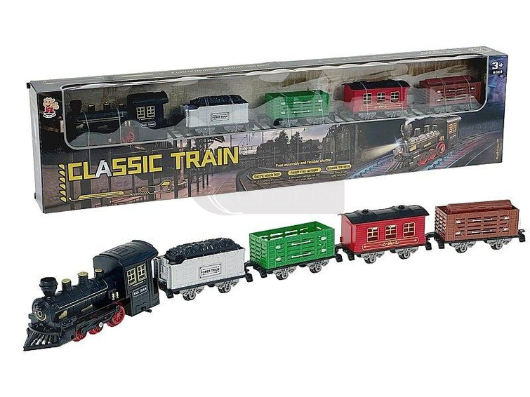 kolejka na baterie, 12 części, 4 wagoniki, światło, dźwięk, funkcja dymu, tor owalny 140x92cm; W/B