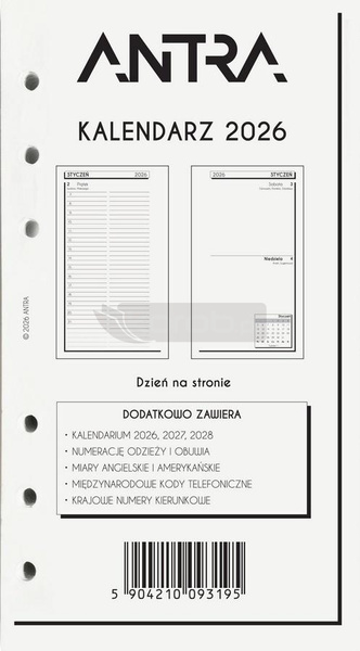 Wkład kalendarzowy 2026 B6 DNS (dzień na stronie, białe kartki)