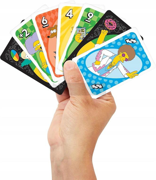Uwielbiana przez graczy gra UNO charakteryzuje się grafiką inspirowaną postaciami z serialu „Simpsonowie”. Rozgrywka nawiązuje do klasycznej gry karcianej, w której gracze dopasowują kolory i liczby, aby pozbyć się wszystkich kart. Specjalna zasada „Woo-hoo D'OH” dodaje zabawnego akcentu, pozwalając graczowi zachować bezpieczeństwo (Woo-hoo) lub dołożyć karty (D'OH). Unikalne wzory na każdej karcie pomagają zidentyfikować kolor(y) na karcie, umożliwiając grę graczom z dowolnym rodzajem daltonizmu. Gdy zostaje tylko jedna karta, gracze nie krzyczą „Ay Caramba!”, lecz „UNO”. Ta kolekcjonerska gra, przeznaczona dla 2 do 10 graczy w wieku od 7 lat, będzie świetnym prezentem dla fanów „Simpsonów” i miłośników kart na całym świecie.