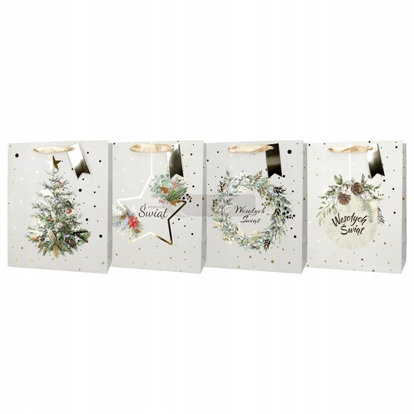 Torebka prezentowa 26x32cm gwiazda bombka mix