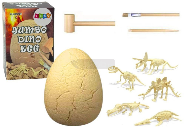 Zestaw Archeologiczny Jajo Dinozaura Skamieniałości Zestaw archeologiczny Jajo Dinozaura Wykopaliska to fascynująca zabawa, która przenosi dzieci w świat odkryć i przygód, umożliwiając im poczucie się jak prawdziwi archeolodzy. To edukacyjna i angażująca zabawka, która rozwija zdolności manualne, cierpliwość oraz wiedzę z zakresu archeologii. W zestawie znajduje się realistyczne jajo dinozaura wykonane z gipsu. To doskonała replika, która umożliwia dzieciom odkrywanie skamieniałości ukrytych w środku. Dzięki temu maluchy mogą przeżyć ekscytującą przygodę, poczucie się jak badacze przeszłości i poznać tajemnice prehistorycznych stworzeń. Do zestawu dołączone są specjalistyczne narzędzia, takie jak młoteczek i dłuto, które są niezbędne do delikatnego i precyzyjnego wydobywania skamieniałości z jaja. Te narzędzia pozwalają dzieciom na realistyczne przeprowadzenie wykopalisk, rozwijając ich umiejętności manualne i koordynację ręka-oko. Zabawa z zestawem Jajo Dinozaura Wykopaliska nie tylko dostarcza radości, ale także wspiera rozwój intelektualny dziecka poprzez naukę cierpliwości, precyzji i podstaw archeologii. To idealny sposób na połączenie zabawy z nauką, który angażuje dzieci w kreatywne i edukacyjne odkrywanie historii prehistorii. Wymiary jaja: 13cm x 10cm Wymiary opakowania: 16cm x 10,5cm x 10,5cm Posiada certyfikat CE, ponadto jest zgodny z normą EN71. Przeznaczony dla dzieci powyżej 6 roku życia.
