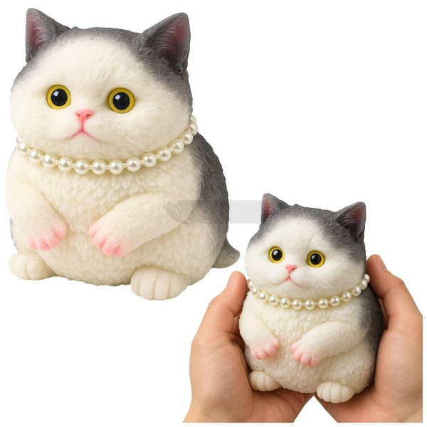 Uroczy biało-szary kotek z perłowym naszyjnikiem to wyjątkowa zabawka sensoryczna i antystresowa, która zachwyca realistycznym wyglądem i przyjemną w dotyku fakturą. Wykonany z elastycznego, silikonowego materiału jest miękki, sprężysty i idealny do ściskania. Faktura powierzchni przypomina sierść prawdziwego kotka, co dodatkowo zwiększa realizm i wrażenia dotykowe podczas zabawy.