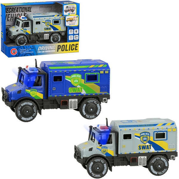 Przedstawiamy Pojazd Policyjny S.W.A.T. "RECREATIONAL VEHICLE", opancerzony wóz akcji, który jest niezbędny w każdej poważnej policyjnej misji! To idealna zabawka dla małych miłośników służb mundurowych i dynamicznej, pełnej wyobraźni zabawy.