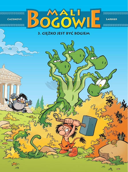 Trzecia część prześmiesznej opowieści o młodych kandydatach na bogów i herosów starożytnej Grecji, którzy nie mają zamiaru cierpliwie czekać, aż dostaną nadprzyrodzone moce. Herakles próbuje wykonać dwanaście prac, choć jeszcze nie został obdarzony konieczną do tego siłą. Odyseusz buduje najwspanialszy statek świata, mimo że wciąż nie nauczył się pływać. Kirke przygotowuje magiczne eliksiry, niestety także takie, które powodują nieciekawe skutki uboczne. Atena zgłębia sztukę wojenną, ale na razie wygrywa tylko w domino. Z kolei Taurusek, jak to Taurusek - a to zrobi piekielnego grilla, a to wymyśli nowe dyscypliny olimpijskie, a to postanowi wykąpać się rzece umarłych. Dziwacznych pomysłów nigdy mu nie brakuje.