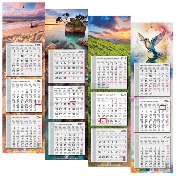Kalendarz 2026 trójdzielny wąski płaski mix