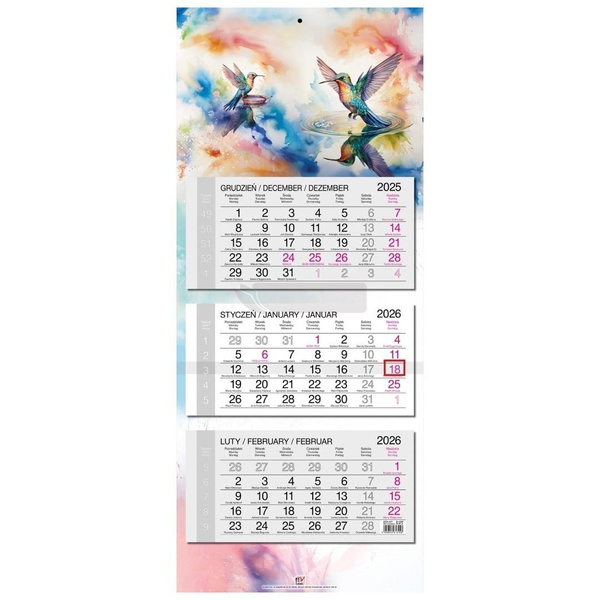Kalendarz 2026 trójdzielny główka płaska Koliber