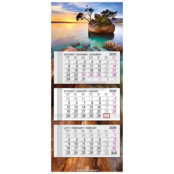 Kalendarz 2026 trójdzielny główka płaska Chorwacja
