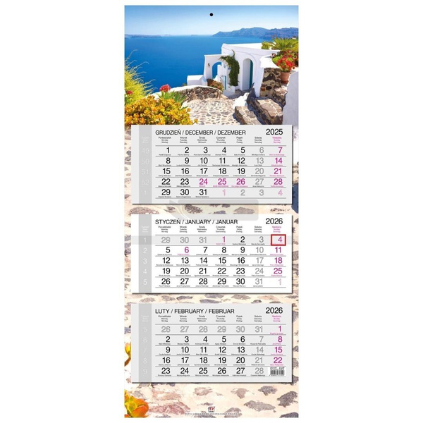 Kalendarz 2026 trójdzielny główka płaska Santorini