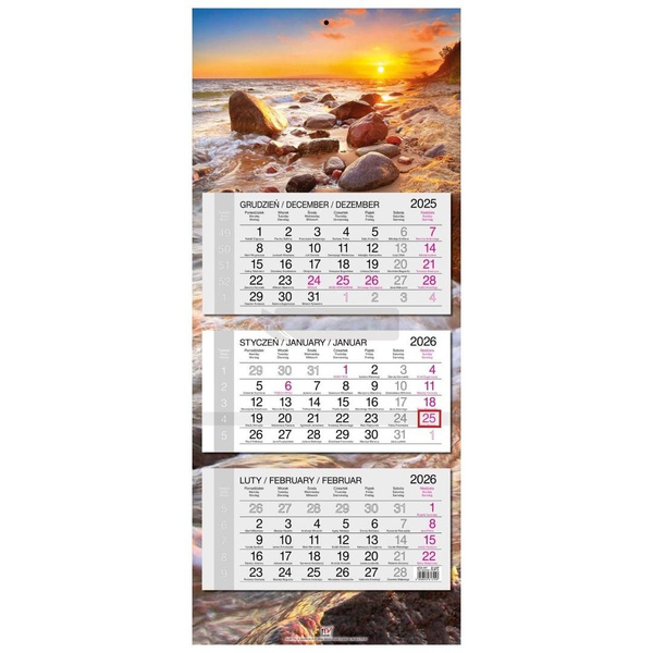 Kalendarz 2026 trójdzielny główka płaska Bałtyk