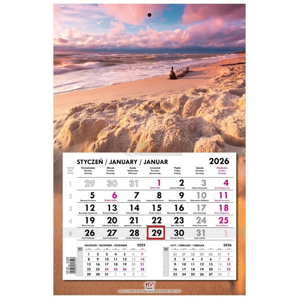 Kalendarz 2026 jednodzielny główka płaska Bałtyk
