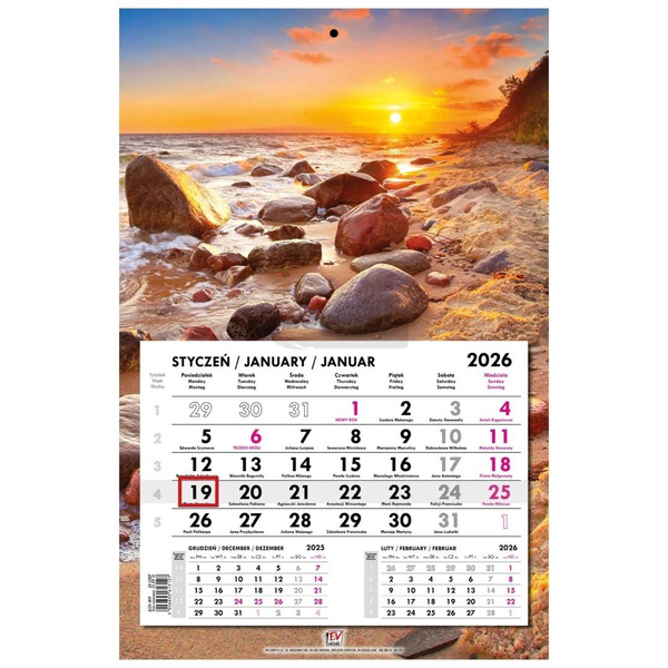 Kalendarz 2026 jednodzielny główka płaska Bałtyk