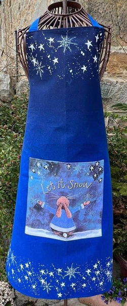 Wymiary fartucha 70 cm x 90 cm, z przodu znajduje się kieszeń o wymiarach 28 x 28 cm. Wykonany ze 100% bawełny.