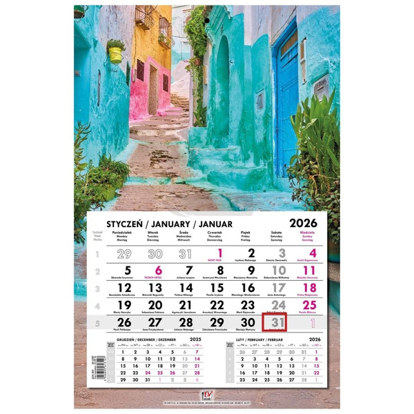 Kalendarz 2026 jednodzielny główka płaska Maroko