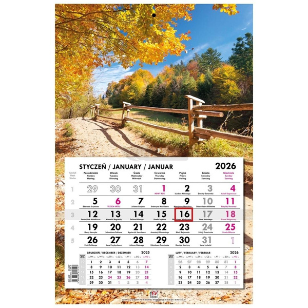 Kalendarz 2026 jednodzielny płaski Krajobrazy