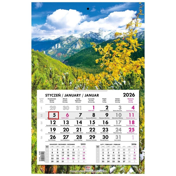 Kalendarz 2026 jednodzielny główka płaska Tatry
