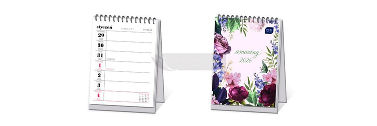 Kalendarz 2026 biurkowy tygodniowy Kwiaty