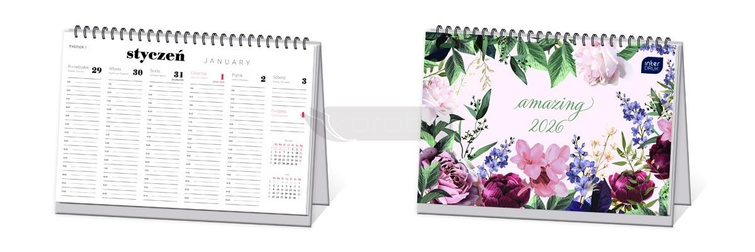 Kalendarz 2026 biurkowy tygodniowy Kwiaty