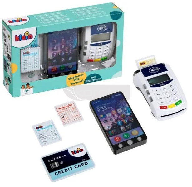 Klein 7274 Terminal ze smartfonem Z terminalem ze smartfonem od Klein mali sprzedawcy staną się profesjonalistami w odgrywaniu ról! Zestaw zawiera realistyczny terminal PoS, w którym można dokonywać płatności kartą kredytową lub smartfonem. Gniazdo na kartę kredytową z towarzyszącym dźwiękiem zapewnia autentyczną zabawę. Dołączony smartfon zachwyca 3 przyciskami z różnymi dźwiękami i latarką funkcja płatności zbliżeniowych dopełnia zabawę. Dzięki akcesoriom, takim jak karty paragonowe i karta kredytowa, dzieci mogą nauczyć się korzystać z nowoczesnej technologii płatności w zabawny sposób. 7-częściowy zestaw zawiera terminal PoS, dziecięcy telefon komórkowy z funkcjami światła i dźwięku, kartę kredytową z funkcją płatności zbliżeniowych oraz trzy karty paragonowe idealne do pomysłowej zabawy w odgrywanie ról. Zabawka wspomaga wyobraźnię, sprawność motoryczną i umiejętności niezbędne we wczesnym dzieciństwie poprzez zabawne zakupy i płatności Specyfikacja: Wymiary: 20 cm x 12 cm x 5 cm Odpowiedni dla dzieci w wieku od 3 lat Wymagane baterie: 6x R03-AAA (Micro) brak w zestawie