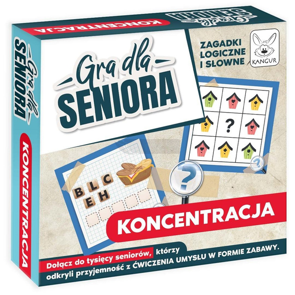 Doskonałe ćwiczenie koncentracji dla seniorów. Sprawdź czy jesteś spostrzegawczy i jak dobrą masz pamięć. W grze znajdziecie 48 kart z obrazkami, zaś na odwrocie kart pytania do tych obrazków. Poświęć tyle czasu ile potrzebujesz i przyjrzyj się obrazkom, następnie postaraj się odpowiedzieć na pytania z drugie strony karty. Karty dostosowane do osób w wieku senioralnym. Wytęż wzrok! Skup się! Każdy szczegół ma znaczenie, aby poprawnie odpowiedzieć co widziałeś. Ta gra to ćwiczenie umysłu i zabawa. Gra dla Seniora