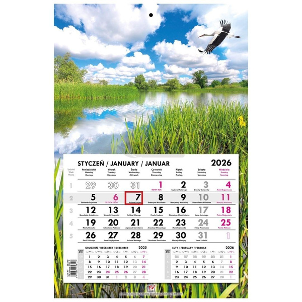 Kalendarz 2026 jednodzielny główka płaska Mazury
